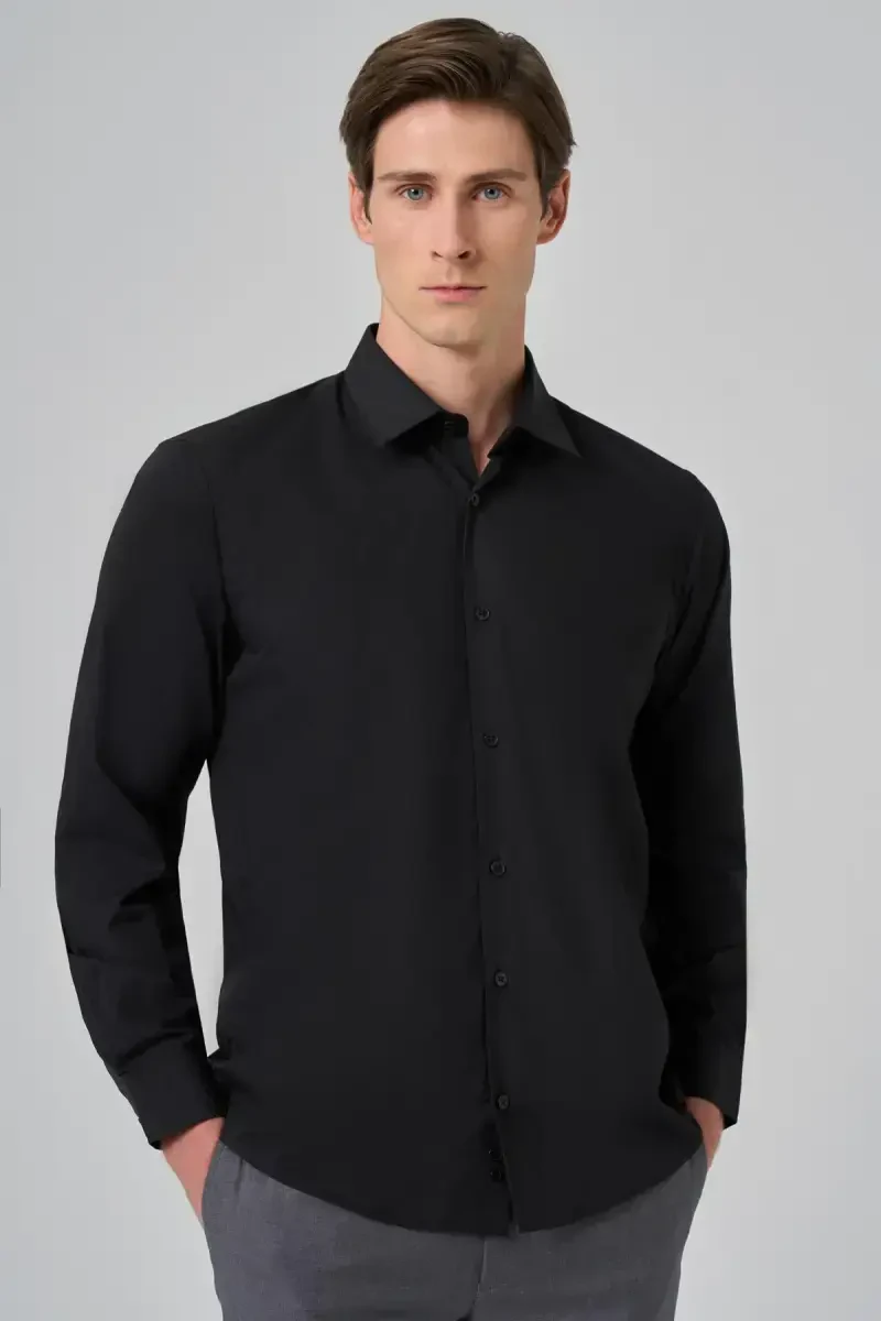 Мужская черная рубашка | Basic Regular Fit Жесткий воротник | Рубашка ModaZon