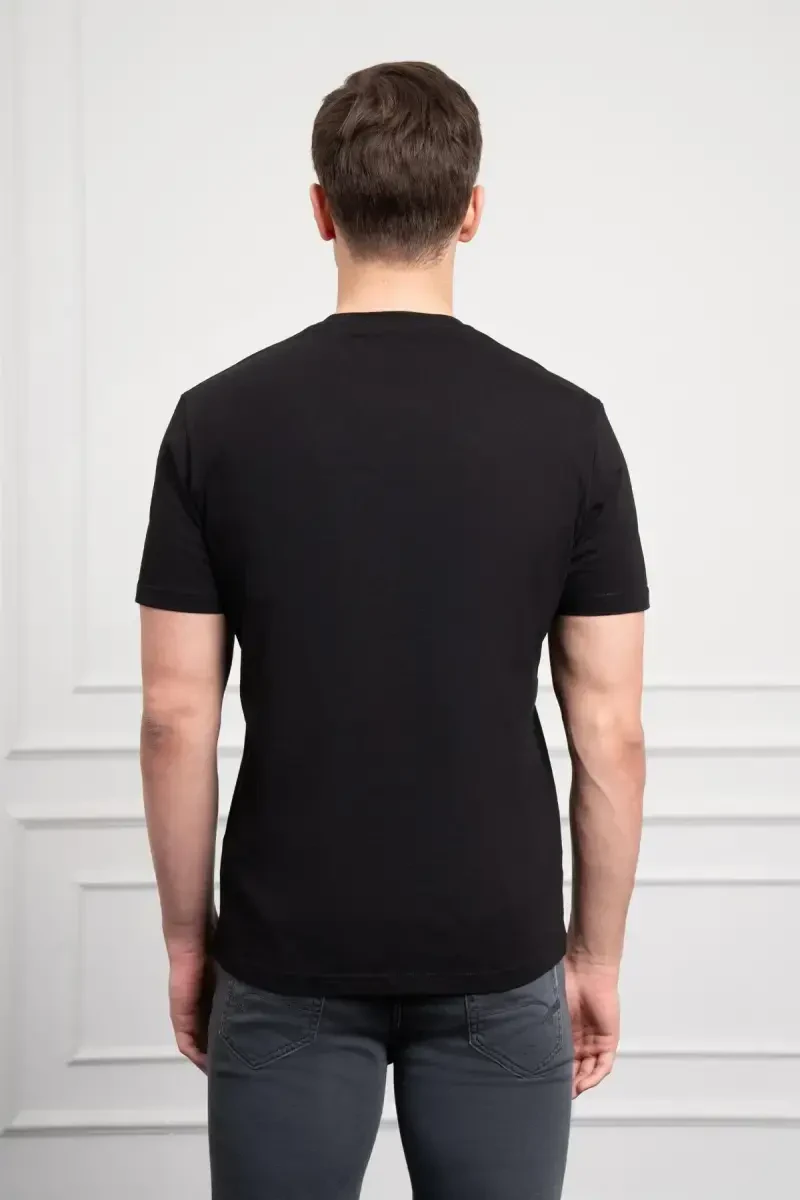 Мужская футболка, черная футболка, круглый вырез, хлопковая футболка, динамичный крой, трендовая футболка, ModaZOne, удобная футболка, стильная футболка, мужская одежда