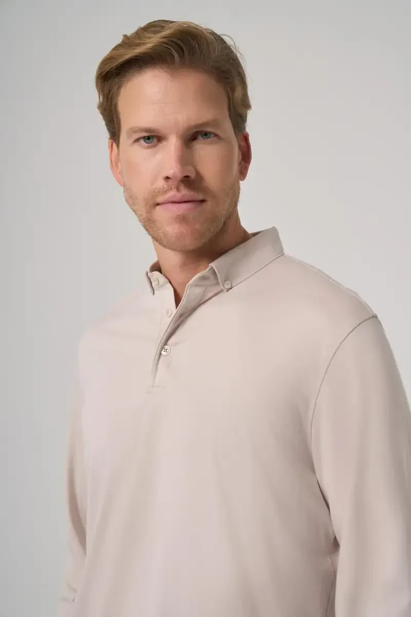 ModaZon Erkek Taş Rengi Polo Yaka Rayon Sweatshirt | Şık ve Rahat