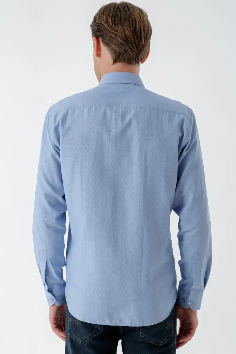 ModaZon Erkek Gömlek: Mavi, Trend Baskılı, İtalyan Yaka, Slim Fit, Pamuklu