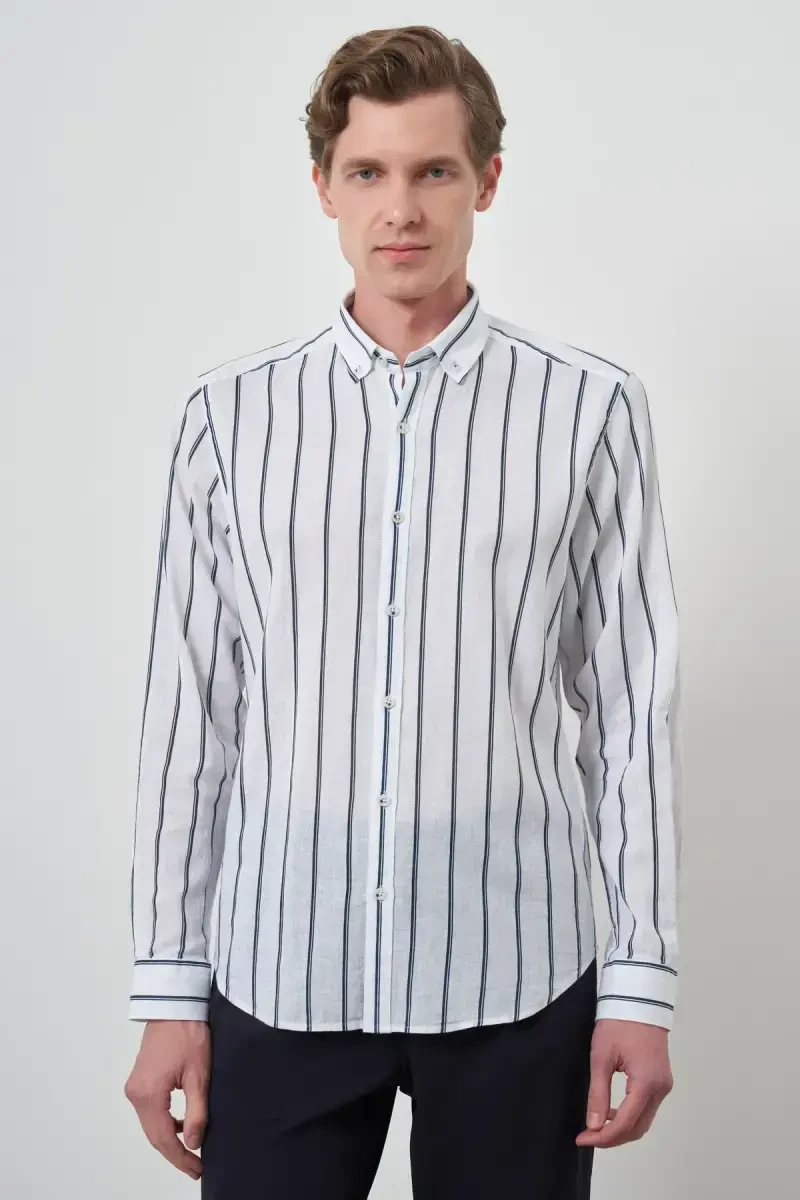ModaZon Мужская темно-синяя льняная рубашка Dynamic Fit на пуговицах — незаменимая вещь в гардеробе стильных мужчин. Эта рубашка сочетает в себе современный дизайн и превосходный комфорт, что делает ее подходящим вариантом как для повседневного использования, так и для особых случаев. Вечная элегантность темно-синего цвета, естественная текстура льняной ткани и комфорт кроя Dynamic Fit объединяются, чтобы создать уникальный опыт. Льняная ткань рубашки предотвращает потоотделение в жаркую погоду, сохраняя ощущение свежести в течение всего дня. Лен производится из натуральных волокон, поэтому он безопасен для вашей кожи и с меньшей вероятностью вызывает аллергические реакции. Крой Dynamic Fit изящно облегает линии вашего тела, не ограничивая при этом свободу движений. Таким образом, вы будете выглядеть стильно и чувствовать себя комфортно в течение всего дня. Деталь с пуговицами на воротнике придает рубашке классический вид и позволяет создавать различные сочетания. Создайте ли вы спортивный образ с джинсами или более элегантный образ с брюками чинос, эта рубашка легко адаптируется к любому стилю. ModaZon Мужская темно-синяя льняная рубашка Dynamic Fit на пуговицах не только выглядит стильно, но и обеспечивает длительное использование. Благодаря качественному материалу и тщательному изготовлению он остается как новый в течение многих лет. Темно-синий цвет рубашки также выделяется своей простотой сочетания. Он прекрасно сочетается с нейтральными цветами, такими как белый, бежевый и серый, и вы можете создавать смелые сочетания с яркими цветами, такими как бордовый и горчично-желтый. Независимо от того, носите ли вы рубашку отдельно или в сочетании с пиджаком или блейзером, она поможет вам отразить свой стиль в любой ситуации. ModaZon известен как бренд, сочетающий в себе качество и стиль в мужской одежде. Эта рубашка также является продуктом, отражающим эту философию бренда. Если вы хотите обновить свой гардероб и придать новый импульс своему стилю, ModaZon Мужская темно-синяя льняная рубашка Dynamic Fit на пуговицах — именно то, что вам нужно. Эта рубашка, сочетающая в себе комфорт и стиль, понравится каждому мужчине.