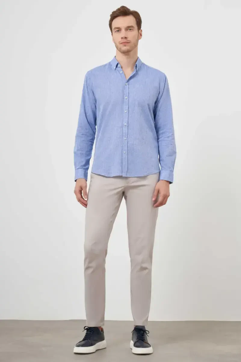 Лазурная льняная рубашка | Мужская рубашка Modazone | Приталенный шик