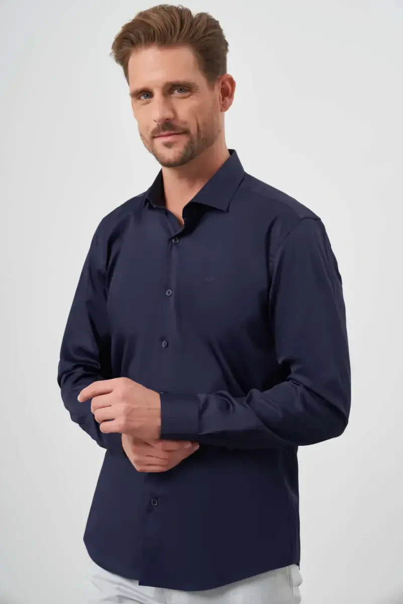 Мода Зону Мужская Темно-синяя Хлопковая Однотонная Итальянский Воротник Slim Fit Рубашка – это особый дизайн, сочетающий в себе элегантность и комфорт. Она позволяет отразить свой стиль в любой обстановке, от повседневной носки до особых мероприятий. Темно-синий цвет легко сочетается с классическими и современными стилями одежды, а однотонный узор придает рубашке простой и элегантный вид. Благодаря хлопковой ткани она обеспечивает комфорт в течение всего дня. Крой Slim Fit позволяет получить более подтянутый и стильный вид благодаря облегающему телу фасону. Итальянский воротник добавляет рубашке изысканности, выделяя ваш стиль.Эта рубашка изготовлена из высококачественной хлопковой ткани. Хлопок благодаря своей дышащей структуре предотвращает потоотделение и не вредит коже. Она сохраняет свой первоначальный вид даже при длительном использовании. Швы рубашки выполнены с особой тщательностью и долговечны. Крой Slim Fit подчеркивает линии тела, создавая современный и стильный силуэт. Итальянский воротник подходит для ношения галстука и позволяет персонализировать свой стиль, комбинируя его с разными моделями галстуков. Темно-синий цвет рубашки легко сочетается с разными цветами. Вы можете легко комбинировать ее с джинсами, чиносами или тканевыми брюками, создавая разные стили.Мода Zonu Мужская Темно-синяя Хлопковая Однотонная Итальянский Воротник Slim Fit Рубашка станет одной из незаменимых вещей в вашем гардеробе. Она поможет вам продемонстрировать свою элегантность и стиль как в деловой жизни, так и в общественной деятельности. Вы можете дополнить рубашку пиджаком или блейзером, чтобы создать более официальный образ. Для спортивного стиля вы можете создать более непринужденный образ, закатав рукава и надев поверх футболку. Рубашка также очень проста в уходе. Ее можно стирать в машине и гладить. Таким образом, вы можете использовать ее в течение длительного времени и всегда выглядеть стильно. Эта рубашка, произведенная с качеством Moda Zonu, является идеальным выбором для мужчин, которые ценят как стиль, так и комфорт. Вы можете выбрать эту рубашку, чтобы отразить свой собственный стиль и привлекать внимание в любой обстановке.