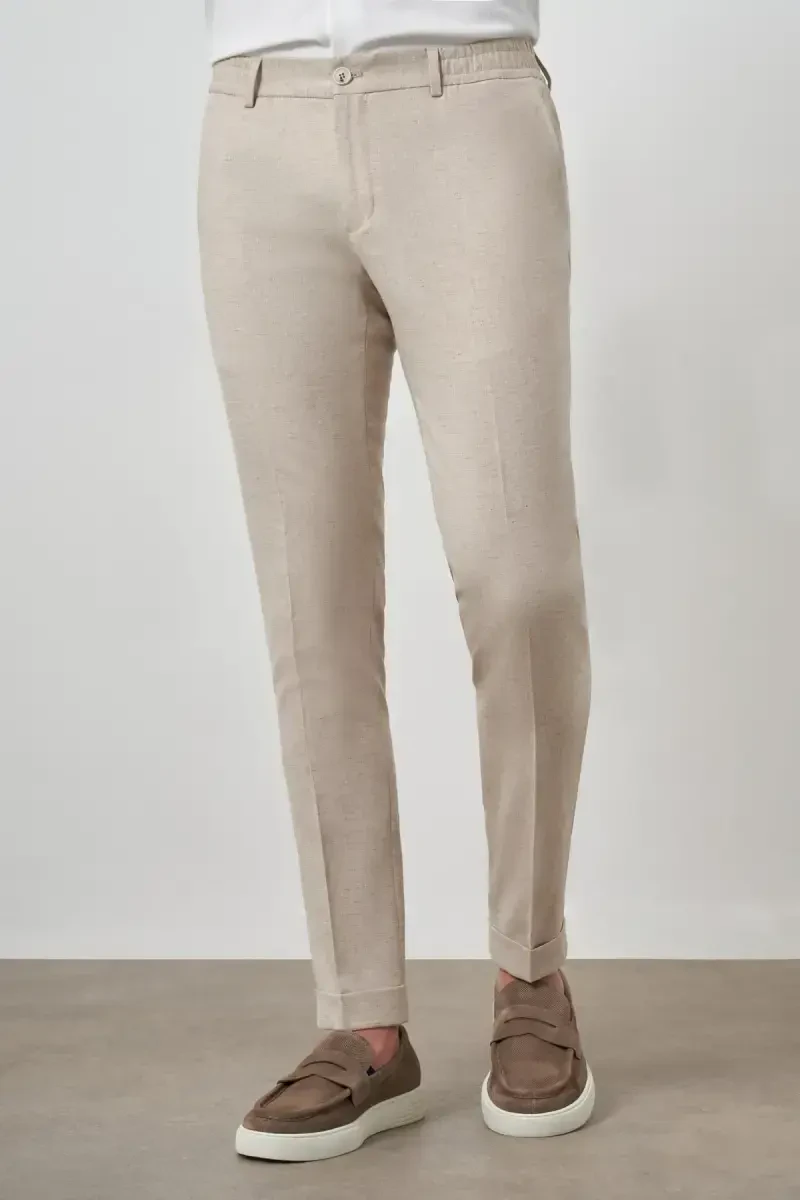 Modazone Erkek Bej Slim Fit Lastikli Pantolon | Rahat ve Şık