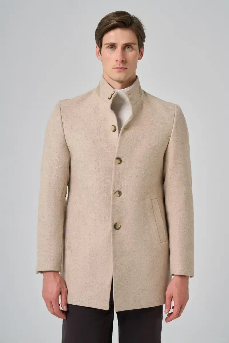 ModaZon Erkek Bej Yünlü Kaban | Hakim Yaka, Dynamic Fit