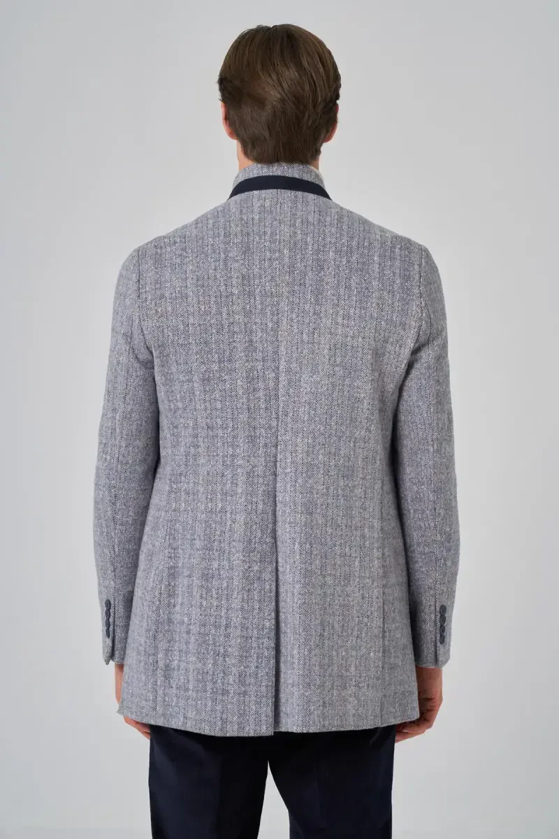 Мужское темно-синее пальто в елочку с воротником-стойкой | Dynamic Fit