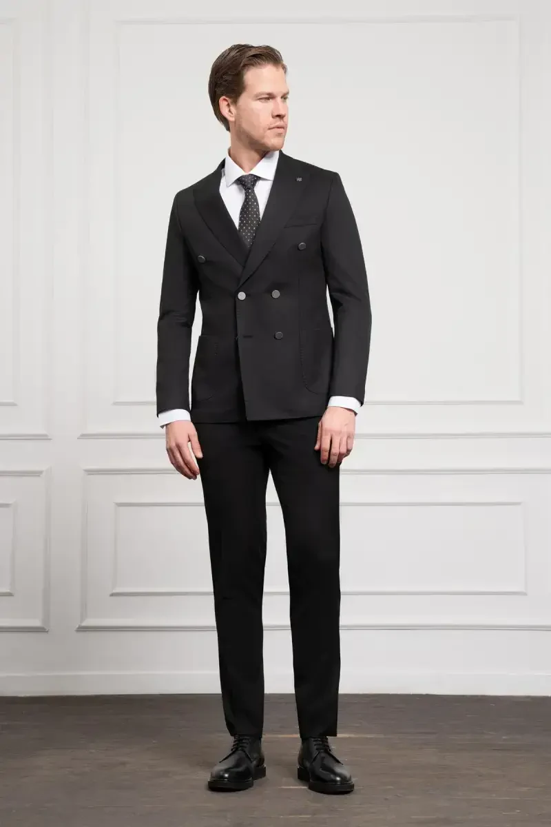 Мужской черный двубортный приталенный костюм с острым воротником от ModaZon претендует на то, чтобы стать незаменимой частью гардероба современного мужчины. Этот костюм, в котором вы можете продемонстрировать свою элегантность как в деловой жизни, так и на особых мероприятиях, обеспечит долговечность благодаря высококачественной ткани и безупречному исполнению. Благодаря приталенному крою он идеально сидит по фигуре, позволяя добиться подтянутого внешнего вида. Двубортный фасон привносит современный оттенок в классические костюмы, а заостренный воротник добавляет вашему стилю особое измерение. Этот костюм, несущий благородство черного цвета, легко сочетается с рубашками и галстуками любого цвета. Он позволяет вам чувствовать себя уверенно и стильно как на свадьбах, так и на особых днях и деловых встречах. Этот костюм – не просто одежда, это еще и позиция. Мужской черный двубортный приталенный костюм с острым воротником от ModaZon, выбор уверенных в себе и стильных мужчин, станет одним из самых особенных предметов вашего гардероба. Ткань костюма тщательно подобрана для вашего комфорта в течение всего дня. Благодаря своей воздухопроницаемой структуре вы можете поддерживать свою элегантность, не жертвуя комфортом в течение долгих часов. Швы костюма выполнены с особой тщательностью до мельчайших деталей. Благодаря этому посадка костюма всегда будет безупречной. Этот костюм, произведенный с качеством ModaZon, сохранит свою первоначальную элегантность на долгие годы. Этот костюм, который вы можете использовать не только для особых случаев, но и в повседневной жизни, позволяет создавать разные стили с разными комбинациями. Например, вы можете добиться более непринужденного образа, надев под него простую футболку. Или вы можете создать более официальный вид, сочетая его с элегантной рубашкой и галстуком. Выбор за вами, ваш стиль за вами. Будьте готовы привлекать внимание всегда и везде с мужским черным двубортным приталенным костюмом с острым воротником от ModaZon.