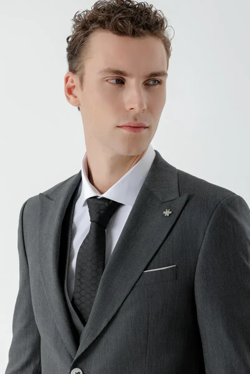 Черный костюм Slim Fit с узором и жилетом - Осень-Зима
