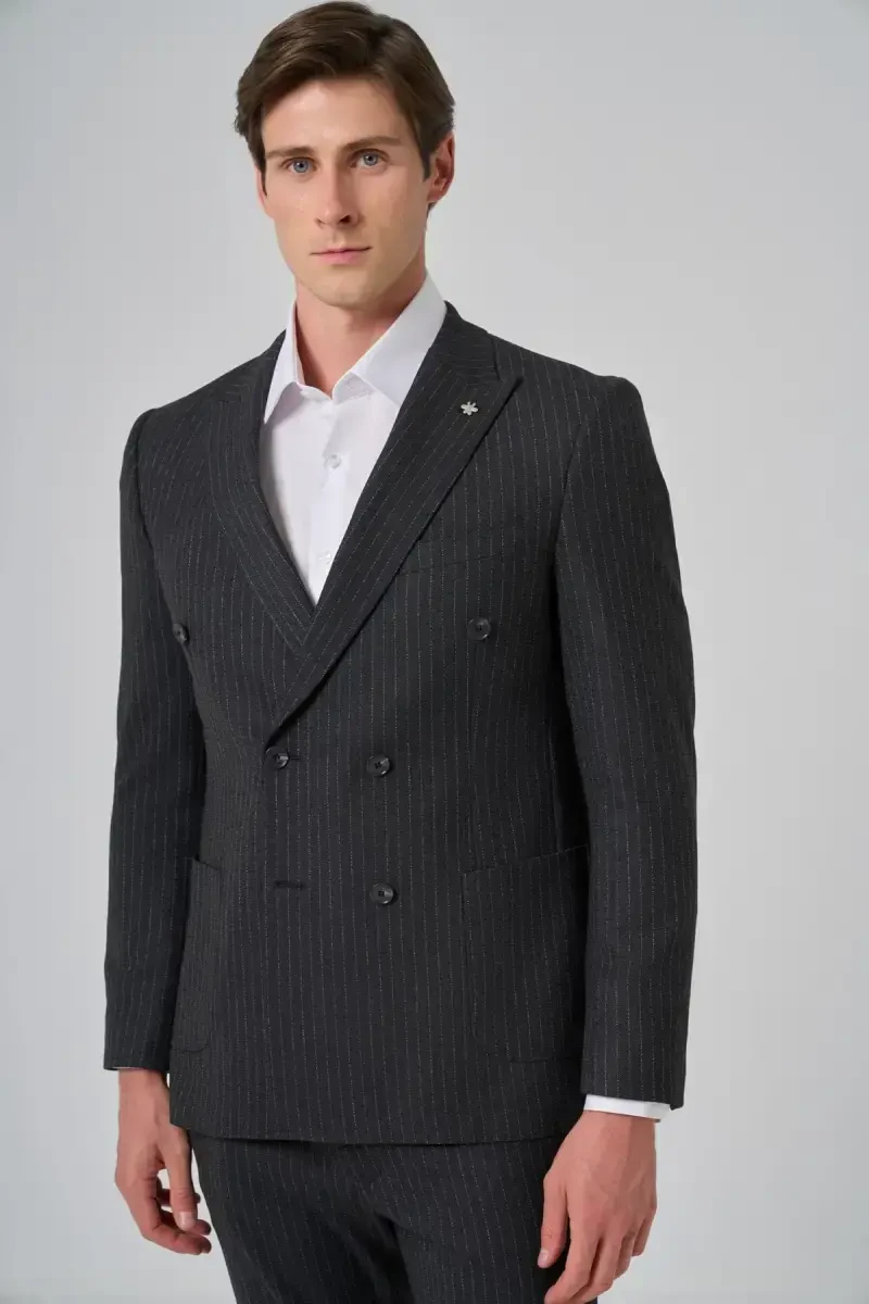 ModaZon Мужской Дымчатый Полувискозный Трендовый Полосатый Приталенный Костюм Двойка с Острым Воротником на Пуговицах - это специальный дизайн, который понравится стильным и оригинальным мужчинам. Он идеально подходит для тех, кто хочет выглядеть стильно на работе, на особых мероприятиях или в повседневной жизни. Благородный оттенок дымчатого цвета, трендовый полосатый узор и приталенный крой создают привлекательный образ. Деталь с острым воротником придает костюму современный и изысканный вид, а застежка на пуговицах привносит в современность классическую элегантность. Долговечность и комфорт полувискозной ткани обеспечивают комфорт в течение всего дня. Благодаря устойчивости к складкам вы всегда будете выглядеть аккуратно. Приталенный крой помогает добиться подтянутого вида благодаря облегающему фигуру крою. Качественные швы и детали гарантируют долговечность изделия. Он легко сочетается с различными комбинациями рубашек и галстуков. Вы можете добиться классического образа на деловых встречах, смелого - на особых мероприятиях и спортивно-элегантного - в повседневной жизни. Он станет незаменимым элементом вашего гардероба и поможет вам продемонстрировать свой стиль в любой обстановке. Вы всегда можете создать безупречный образ, сочетая его с аксессуарами и обувью, отражающими ваш собственный стиль. Этот костюм от ModaZon - отличный выбор для мужчин, которые ищут сочетание стиля и комфорта. Будь то на работе или в особые моменты, у вас всегда будет привлекательный и оригинальный стиль. Дышащая структура ткани позволяет вам чувствовать себя комфортно в течение всего дня. Крой костюма создает стильный силуэт, не ограничивая вашу свободу движений. Дымчатый цвет легко адаптируется к любому оттенку кожи и может быть легко адаптирован к гардеробу каждого мужчины. Трендовый полосатый узор придает костюму современный вид, а деталь с острым воротником создает мужественный вид. Застежка на пуговицах создает классический и элегантный образ. ModaZon привносит в мужскую моду новое дыхание, объединяя в этом костюме качество и стиль. Как на работе, так и на особых мероприятиях вы можете чувствовать себя уверенно и стильно в этом костюме. Вы можете наилучшим образом продемонстрировать свой стиль, сочетая его с правильными аксессуарами, которые дополнят ваш стиль. Будьте всегда на шаг впереди с мужским дымчатым полувискозным трендовым полосатым приталенным костюмом двойкой с острым воротником на пуговицах от ModaZon!