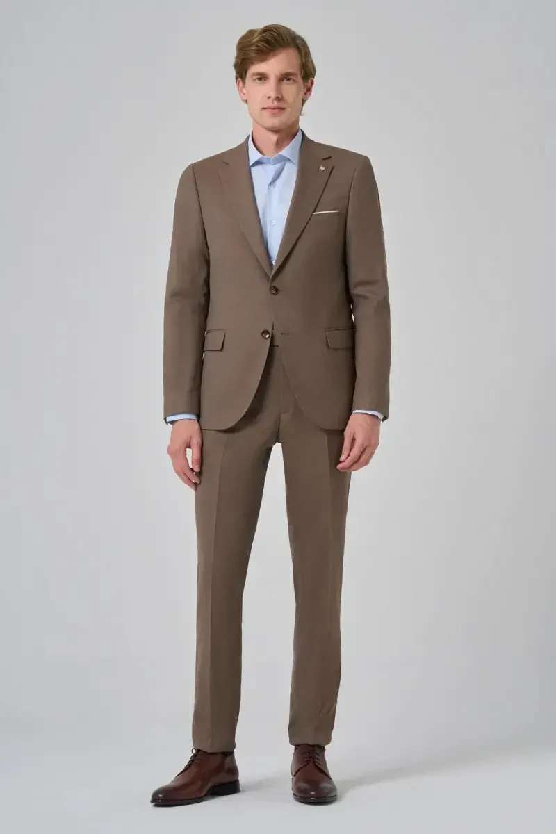 Мужской костюм ModaZon из шерсти, кофейного цвета, приталенного кроя, с моно-воротником - это особенный предмет, который должен быть в гардеробе современного мужчины, предлагающий вневременную элегантность. Этот костюм - не просто предмет одежды, но и выражение стиля. Теплота кофейного цвета и роскошная текстура шерстяной ткани обеспечивают универсальное использование, которое можно носить в любое время года. Приталенный крой создает современный силуэт, облегающий ваше тело и подчеркивающий ваши формы, а дизайн с моно-воротником обеспечивает классический и элегантный вид. Этот костюм повысит вашу уверенность в себе на работе и позволит вам ослеплять своей элегантностью на особых мероприятиях.Высококачественная ткань из смеси шерсти не только согревает, но и обеспечивает комфорт в течение всего дня благодаря своей воздухопроницаемости. Текстура ткани добавляет костюму особую глубину и богатство. Приталенный крой идеально подходит к фигуре современного мужчины, позволяя вам добиться более динамичного и подтянутого вида. Дизайн с моно-воротником добавляет костюму классический штрих, позволяя вам отразить свой личный стиль с помощью различных комбинаций галстуков и рубашек.Мужской костюм ModaZon из шерсти, кофейного цвета, приталенного кроя, с моно-воротником выделяется не только своим внешним видом, но и деталями. Внутренняя подкладка обеспечивает мягкое прикосновение к вашей коже, а ее потоотталкивающие свойства позволяют вам оставаться свежим в течение всего дня. Тщательно подобранные пуговицы дополняют элегантность, гармонируя с общим дизайном костюма. Удобные карманы на пиджаке и брюках позволяют безопасно носить с собой повседневные вещи. Каждая деталь костюма продумана до мельчайших деталей.Этот костюм идеально подходит не только для особых случаев, но и для повседневной носки. Вы можете выглядеть профессионально, надев его на деловые встречи, презентации или официальные мероприятия. В то же время вы можете привлечь внимание своим стилем, надев его на особый ужин или празднование. Мужской костюм ModaZon из шерсти, кофейного цвета, приталенного кроя, с моно-воротником станет одним из самых ценных предметов вашего гардероба и всегда придаст вам уверенности. С этим костюмом вы не просто оденетесь, вы также отразите свой стиль и индивидуальность. Выберите мужской костюм ModaZon из шерсти, кофейного цвета, приталенного кроя, с моно-воротником, чтобы чувствовать себя особенным и выделяться в любой обстановке.
