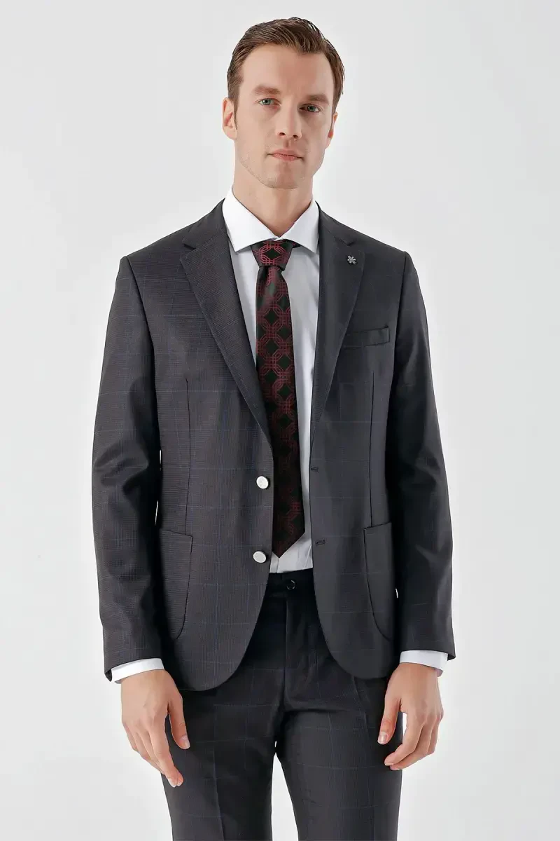 Mürdüm Ekose Slim Fit Takım Elbise | Modazone Erkek Giyim