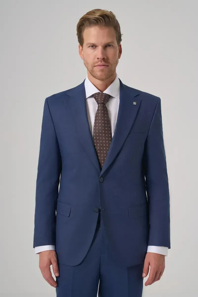 Modazone Lacivert Yünlü Trend Erkek Takım Elbise | Dynamic Fit & Mono Yaka