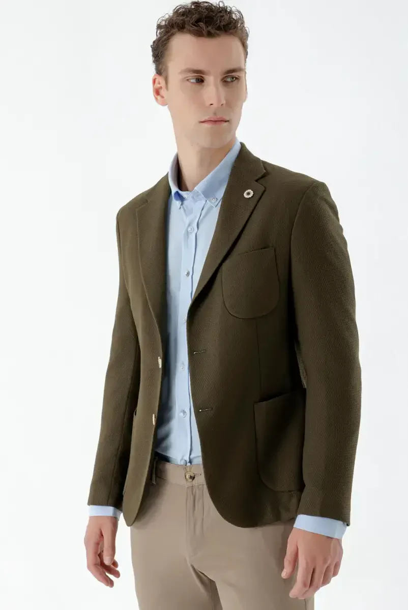 ModaZone Haki Slim Fit Erkek Ceket | Dokuma, Torba Cep, Mono Yaka
