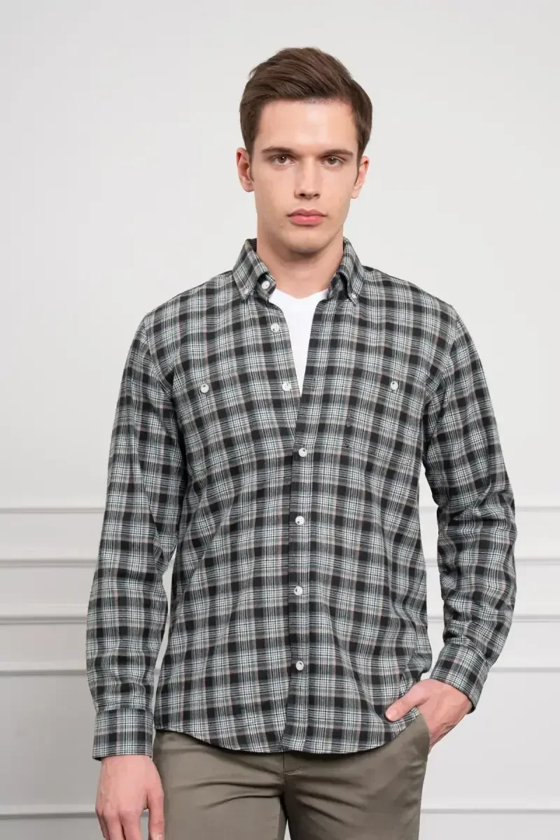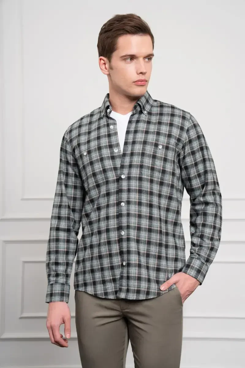 %100 Хлопок, Воротник на пуговицах, Классический крой, Длинный рукав, Хаки, Зимний.