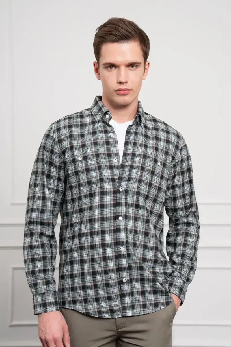 Хаки Хлопковая Рубашка с Пуговицами, Длинные Рукава и Воротник | Зимняя