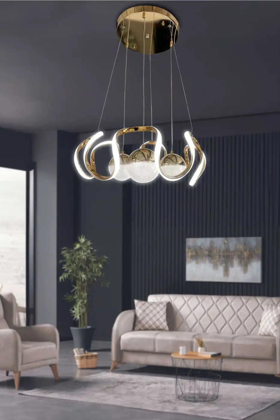 Transform your living room or sitting room into a completely different atmosphere with this 3-piece LED chandelier that reflects your home's elegance and modern style. Its modern design and elegant appearance offer a stunning aesthetic, while its 3 different color options meet your lighting needs perfectly.