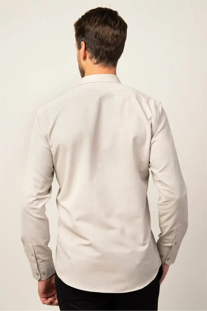Modern Slim Fit Pamuklu Kolay Ütü Armürlü Erkek Gömlek-Bej