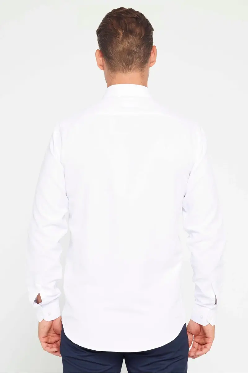 Modern Slim Fit Pamuklu Kolay Ütü Armürlü Erkek Gömlek-Beyaz