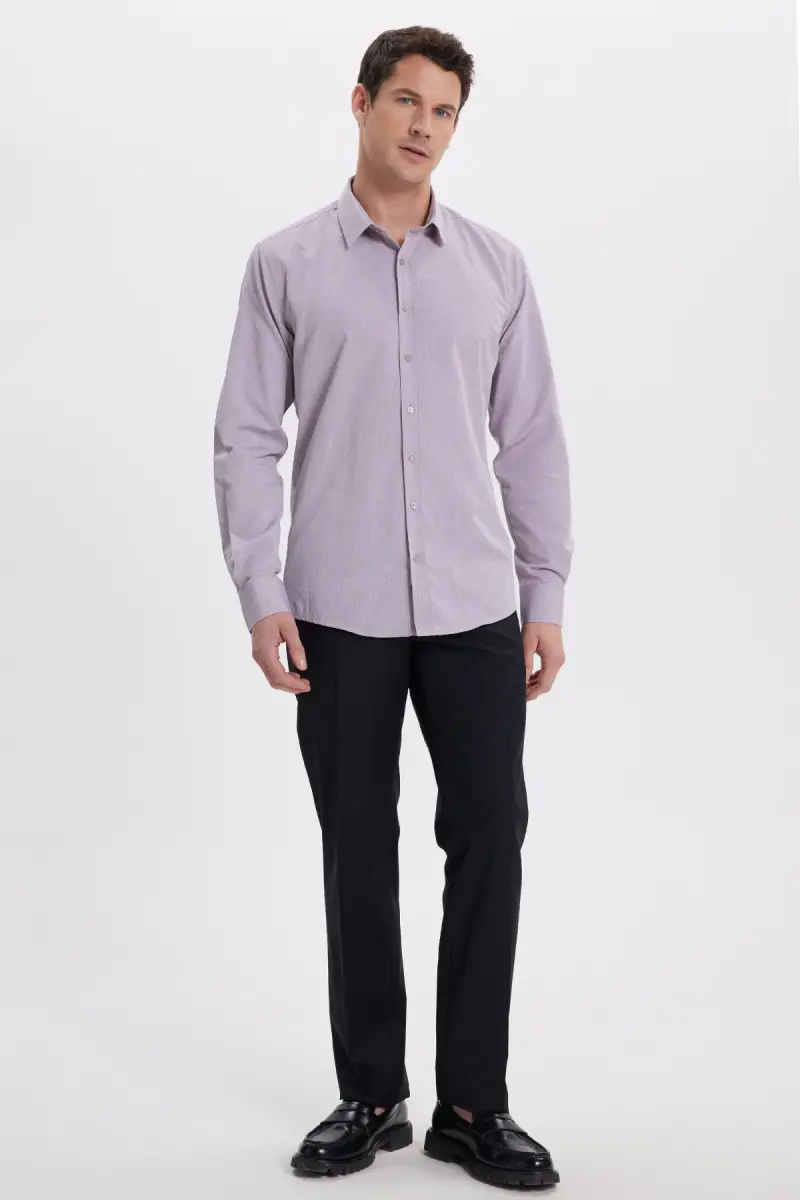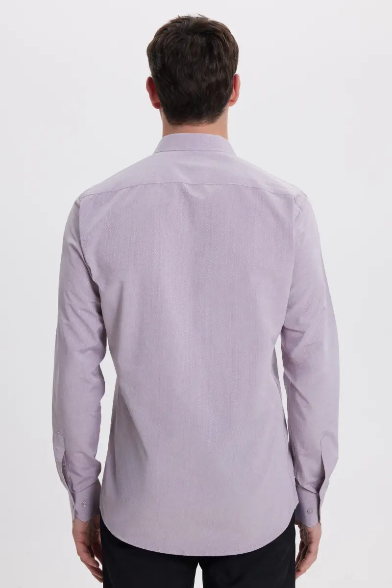 Modern Slim Fit Uzun Kollu Pamuklu Kolay Ütü Armürlü Gül Kurusu Erkek Gömlek-Gül Kurusu