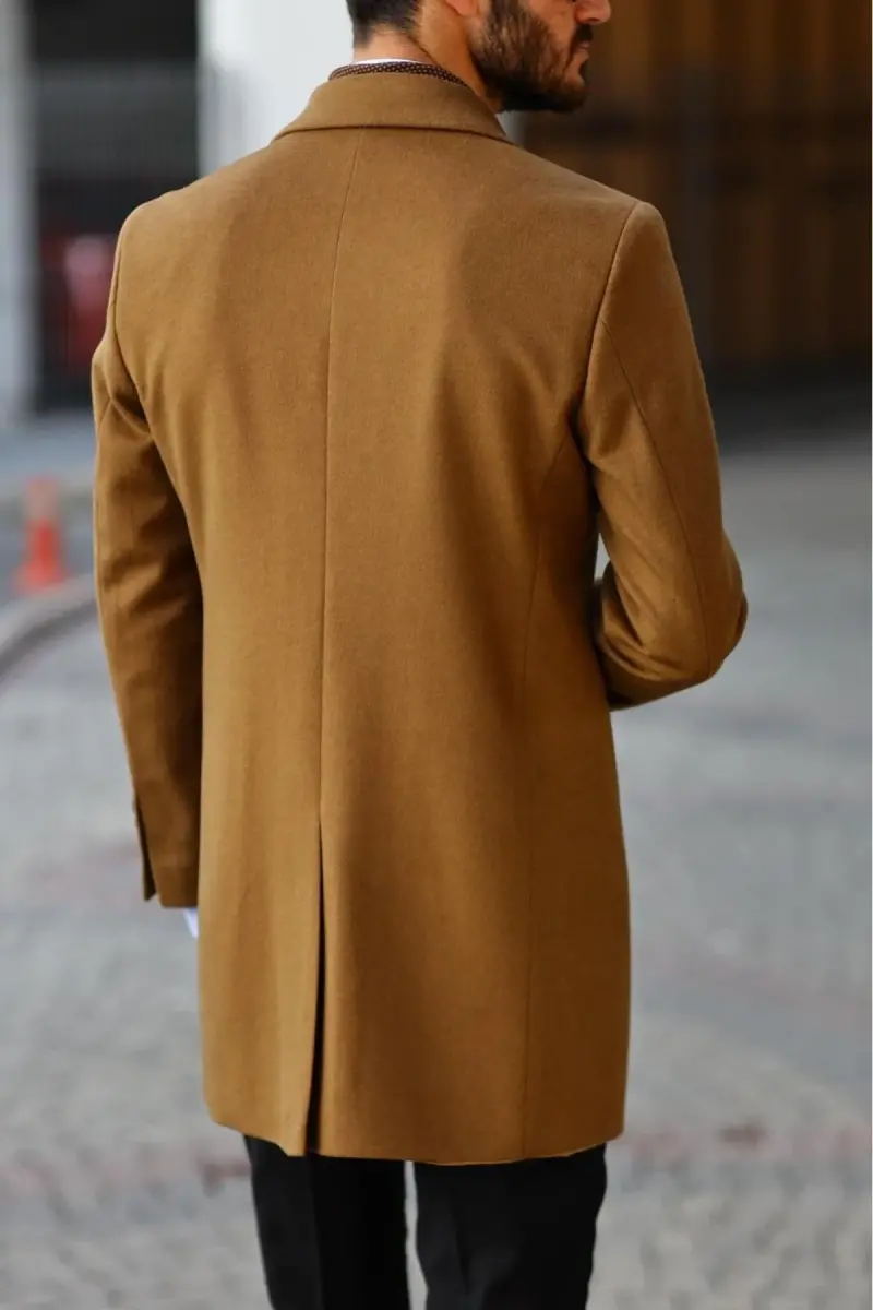 Modern Tasarım Erkek Klasik Kaban - %80 Yün %20 Polyester-kav7000w-Camel