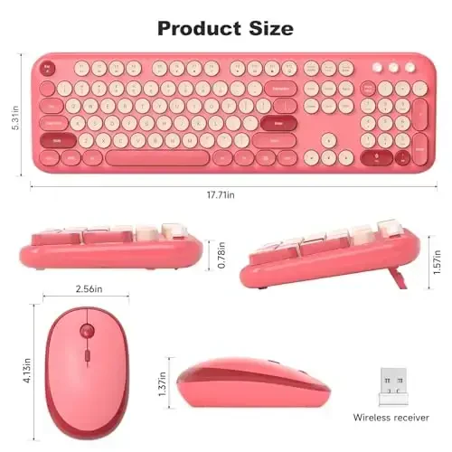 Добавьте красок и стиля в свое рабочее пространство с набором беспроводной клавиатуры и мыши MOFII! Эта комбинация клавиатуры в стиле ретро-пишущей машинки и тихой мыши сочетает в себе функциональность и эстетику. Этот набор яркого розового цвета идеально подходит для вашего ноутбука, ПК, настольного компьютера и устройств с операционной системой Windows. Благодаря беспроводной технологии 2,4 ГГц вы избавитесь от беспорядка с кабелями и получите непрерывное соединение на расстоянии до 10 метров.Цветная клавиатура с 104 клавишами, круглыми колпачками клавиш и складной подставкой обеспечивает комфорт даже при длительном использовании. Благодаря противоскользящим накладкам клавиатура надежно стоит на столе и не скользит. Тихая мышь обеспечивает точное управление с тремя различными уровнями чувствительности. Независимо от того, работаете ли вы в офисе или играете дома, этот набор удовлетворит все ваши потребности.Эта ретро-клавиатура не только стильно выглядит, но и предлагает практичные функции. Благодаря цифровой клавиатуре и 13 мультимедийным клавишам быстрого доступа вы можете легко управлять такими приложениями, как видео, музыка, веб-страницы и электронная почта. Чтобы продлить срок службы батареи, клавиатура и мышь автоматически переходят в спящий режим после 5 минут бездействия и активируются повторно при нажатии любой клавиши. С набором беспроводной клавиатуры и мыши MOFII вы сможете не только отразить свой стиль, но и повысить свою производительность. Совместим с операционными системами Windows 7/8/10/11/XP/Vista, Linux и Chrome, этот набор без проблем работает с ноутбуками, ПК, настольными компьютерами, Chromebook и многими другими устройствами. Клавиатура и мышь MOFII отличаются высоким качеством, долговечностью и надежностью. Это идеальный выбор, чтобы раскрасить ваше рабочее пространство и сделать его более приятным. Кроме того, если вы хотите иметь дополнительную гарантию от возможных сбоев, вы можете рассмотреть дополнительные планы защиты, предлагаемые Asurion для этого продукта, который вы покупаете на Amazon. Эти планы обеспечивают дополнительную защиту в случаях неисправности, падения или попадания жидкости, что способствует долговечности вашего продукта.