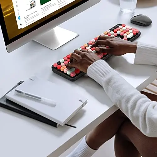 беспроводная клавиатура мышь, беспроводная клавиатура, беспроводная мышь, ретро клавиатура, клавиатура с круглыми клавишами, цветная клавиатура, эргономичная мышь, тихая мышь, офисная клавиатура мышь, клавиатура plug and play