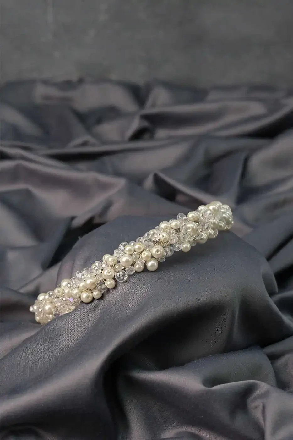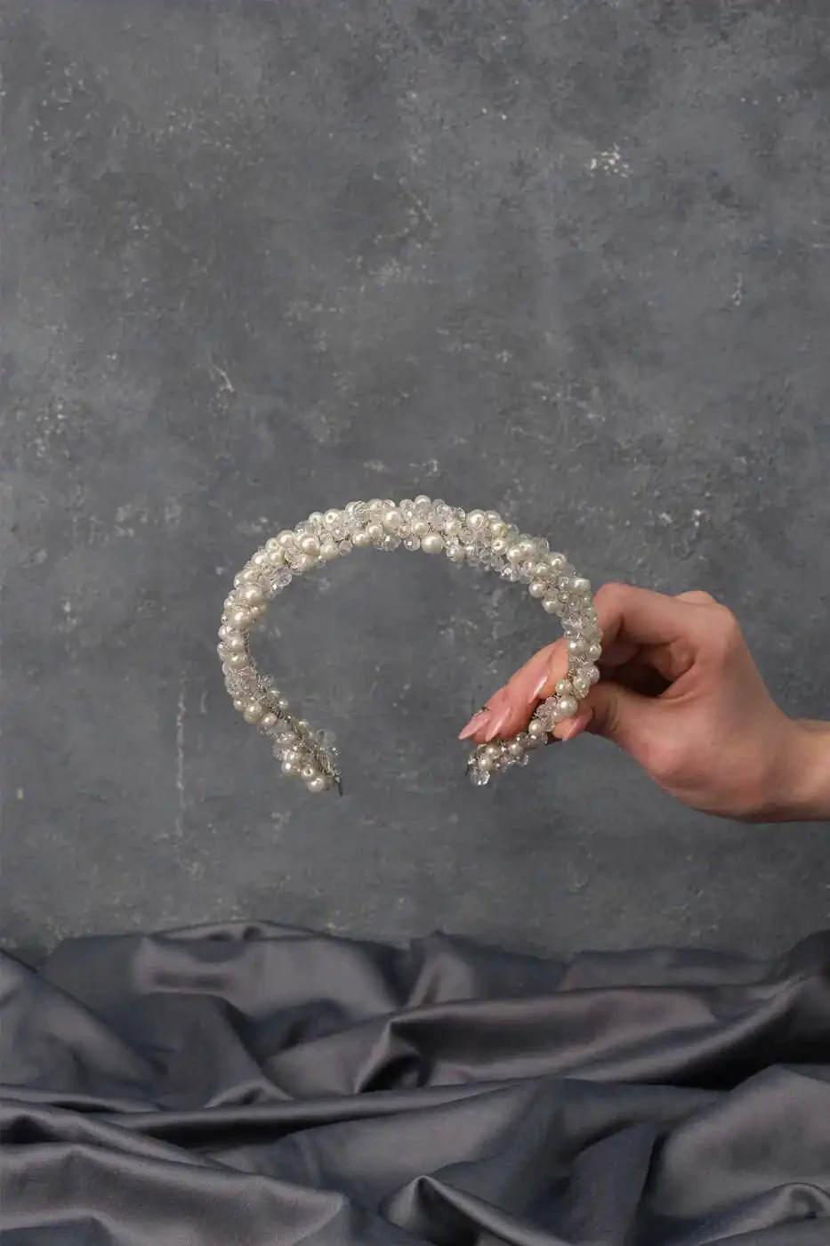 To'y kuningizda ko'zni qamashtiradigan ko'rinish uchun marvaridli kristal boncuk bilan bezatilgan to'y tojimizni tanlang. O'zingizni malika kabi his qilasiz!