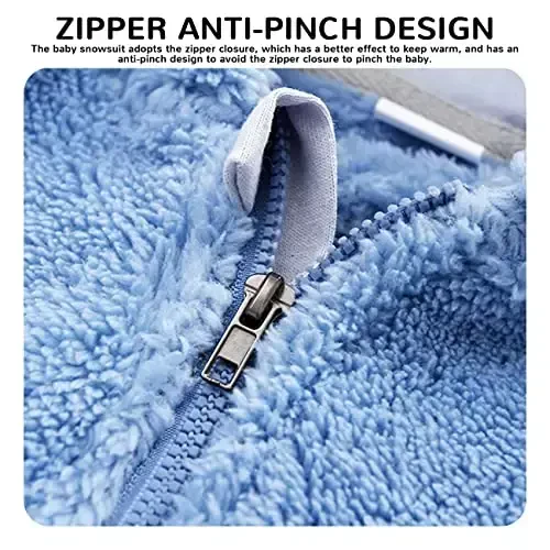 Keep your baby warm and stylish in winter with the Mokitoni Baby Boy Girl Snowsuit! This cute and functional jumpsuit is designed to protect your baby's delicate skin and keep them comfortable in cold weather. Made from high-quality polyester fiber, this snowsuit offers extra warmth thanks to its double-layered lining. The fine polyester fiber texture gently touches your baby's skin, providing all-day comfort.The full-coverage design of the jumpsuit protects your baby's head and ears from the cold, keeping them warm even when they are outside. The zippered design makes it easy to put on and take off, and it is also very practical for diaper changing. The cute bear-eared hood not only keeps your baby warm but also adds extra charm to them.This warm one-piece jumpsuit will be your baby's indispensable item on cold winter days. Whether sleeping at home or playing outside, it ensures that your baby is always comfortable and happy. Thanks to the foldable gloves, your baby's hands will always stay warm. This jumpsuit, which appeals to every taste with its different color options, is one of the must-haves in your baby's wardrobe in winter.Mokitoni Baby Snowsuit is a stylish option that you can choose for daily use as well as for special occasions. It is a perfect gift alternative for birthdays, baby showers, photo shoots and other special events. It can also be a meaningful gift that will make your baby happy on special occasions such as Christmas, Halloween, and Thanksgiving. It offers a suitable alternative for all ages with different size options from 0-3 months to 9-12 months.If you are looking for a warm, comfortable and stylish winter jumpsuit for your baby, Mokitoni Baby Boy Girl Snowsuit is just for you! Order now to ensure your baby has a pleasant and comfortable winter.