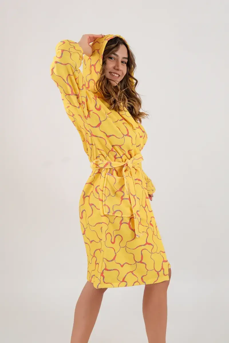 Молодой халат, халат с капюшоном, желтый халат, халат с принтом, мягкий халат, удобный халат, согревающий халат, качественный халат, простой в использовании, быстросохнущий халат