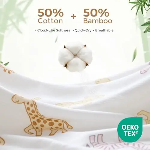 50% Viscose Derived from Bamboo and 50% Cotton [ Hooded Baby Towel -- Soft As A Cloud ] Made of 50% viscose, 50% cotton. Cotton is soft while the viscoe has a silky feel. Wrapping your baby in warmth and softness, Momcozy baby bath towels are like a mother's embrace making each bathing a tender moment [ Super Absorbent and Fast Drying ] The baby hooded bath towel (a blend of viscose and cotton knit terry cloth) is three times more absorbent than single-material towels. It quickly absorbs moisture from the baby's skin, while being soft and breathable, ensuring your baby stays warm and dry after each bath [ Vibrant and Colorful Unisex Towels ] Momcozy baby towels are vibrant and colorful, featuring lively designs like Starry Sky, Leaves, and Lemons. These classic and adorable patterns are great for a baby's visual development and provide all-around care for the baby's healthy growth [Perfect Bath Gift] Baby towels are bath essential for newborn, infants, and toddlers. Momcozy luxury hooded bath towels are the perfect gift choice for new parents, birthdays, or baby registry. Our towels are cozy and soft, packaged in an exquisite box to provide little ones with warm care and companionship, making your gift even more special and well-loved [ Generous Size and Easy Care ] Measuring 35 x 35 inches, hooded towels last from newborn all the way to the toddler years. Baby bath towels is enough to fully covered wrapping to keep baby warm and cozy. Machine wash or hand wash in cold water, quick dry and durable