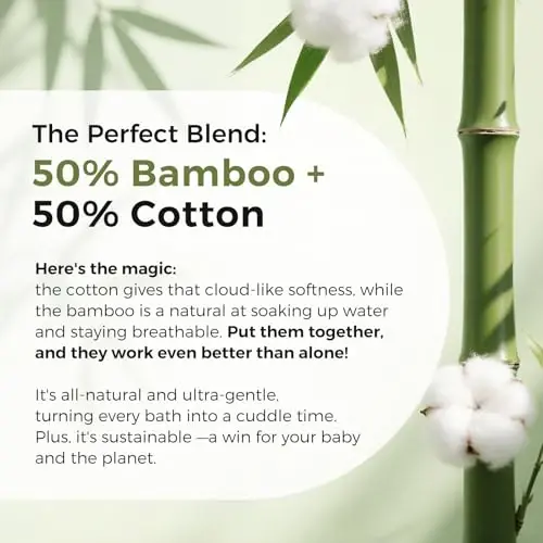 50% Viscose Derived from Bamboo and 50% Cotton [ Hooded Baby Towel -- Soft As A Cloud ] Made of 50% viscose, 50% cotton. Cotton is soft while the viscoe has a silky feel. Wrapping your baby in warmth and softness, Momcozy baby bath towels are like a mother's embrace making each bathing a tender moment [ Super Absorbent and Fast Drying ] The baby hooded bath towel (a blend of viscose and cotton knit terry cloth) is three times more absorbent than single-material towels. It quickly absorbs moisture from the baby's skin, while being soft and breathable, ensuring your baby stays warm and dry after each bath [ Vibrant and Colorful Unisex Towels ] Momcozy baby towels are vibrant and colorful, featuring lively designs like Starry Sky, Leaves, and Lemons. These classic and adorable patterns are great for a baby's visual development and provide all-around care for the baby's healthy growth [Perfect Bath Gift] Baby towels are bath essential for newborn, infants, and toddlers. Momcozy luxury hooded bath towels are the perfect gift choice for new parents, birthdays, or baby registry. Our towels are cozy and soft, packaged in an exquisite box to provide little ones with warm care and companionship, making your gift even more special and well-loved [ Generous Size and Easy Care ] Measuring 35 x 35 inches, hooded towels last from newborn all the way to the toddler years. Baby bath towels is enough to fully covered wrapping to keep baby warm and cozy. Machine wash or hand wash in cold water, quick dry and durable
