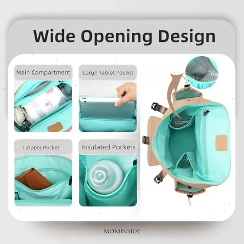 MOMINSIDE Diaper Bag Backpack is an ideal bag for daily use for every mother who has a baby. It can also be used as a daily backpack as your baby grows. It is an excellent choice as a baby shower gift, Mother's Day gift, Valentine's Day gift, birthday gift or Christmas gift. This bag is not only a diaper bag, but also an accessory that makes parenting easier and complements your style. Feel good about yourself while meeting your baby's needs with MOMINSIDE.