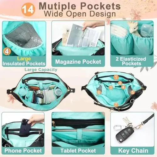 MOMINSIDE Diaper Bag Tote is a stylish and functional baby care bag designed for modern parents. This bag stands out with its convertible design that can be used as both a backpack and a tote bag. Made of high-quality vegan leather and waterproof nylon material, it stands out with its durability and ease of cleaning. Thanks to its spill-resistant exterior, you can easily clean it with just a cloth. The waterproof foldable changing pad inside allows you to change your baby hygienically anywhere. MOMINSIDE Diaper Bag Tote allows you to carry all your baby's belongings in an organized manner with its large interior volume and cleverly designed 14 pockets. Two insulated pockets keep bottles warm, while the 13-inch padded laptop compartment is ideal for mothers returning to work life. The magnetic back pocket allows it to be easily attached to your suitcase when traveling, while the hideable shoulder strap allows you to use the bag as a shoulder bag or messenger bag. MOMINSIDE Diaper Bag Tote is not just a baby care bag, but can also be used as a stylish accessory. Thanks to its wide opening design, you can easily reach the contents and store everything in an organized manner. Even when your baby grows up, you can continue to use this bag as a book bag or laptop bag. MOMINSIDE Diaper Bag Tote is a perfect gift option for expectant mothers, ideal for birthdays, Mother's Day or baby showers. However, it is not suitable for children under 3 years old.
