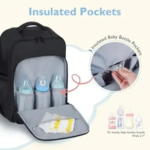 Bebek bezini, emzikleri, biberonları ve diğer bebek eşyalarını ayrı ayrı bölmelerde saklayabilirsiniz. Yalıtımlı cepler, biberonlarınızı sıcak veya soğuk tutmanıza yardımcı olur.