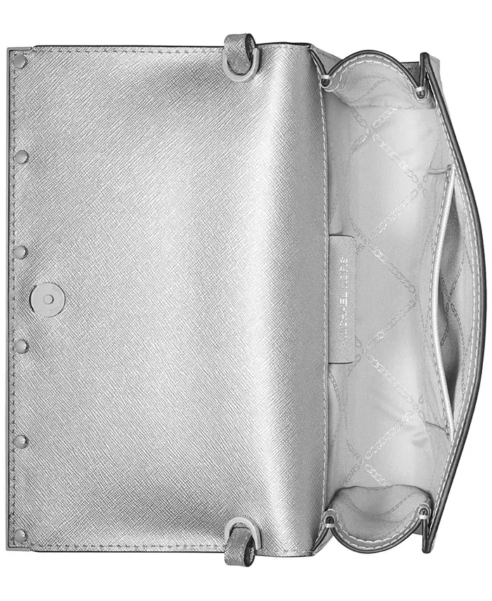 Mona East West Large Leather Clutch-Silver, MICHAEL Michael Kors'un imzasını taşıyan zarif ve şık bir tasarımdır. Bu clutch, lüks metalik detayları ve pürüzsüz deri dokusuyla göz kamaştırırken, hem elde taşımak hem de omuzda kullanmak için idealdir. Günlük kullanımın yanı sıra özel davetlerde de stilinizi tamamlayacak mükemmel bir aksesuardır. Çantanın içindeki kullanışlı bölmeler sayesinde eşyalarınızı düzenli bir şekilde saklayabilirsiniz.Göz alıcı metalik donanımı, bu deri clutch'a sofistike bir parlaklık katarken, şık tasarımı her kombininize zarafet katmaya hazır. İster elinizde taşıyın, ister ince zincir askısıyla omuzunuzda rahatça kullanın, Mona East West Clutch her zaman stilinizi bir üst seviyeye taşıyacaktır.Küçük boyutuna rağmen oldukça kullanışlı olan bu çanta, temel eşyalarınızı kolayca taşımanızı sağlar. Manyetik kapama sistemi sayesinde eşyalarınız güvende kalırken, iç ve dış cepleri sayesinde düzenli bir kullanım sunar. Gold veya gümüş tonlarındaki detaylar, çantanın rengine göre değişiklik göstererek her zevke hitap eder. Ön kısmında yer alan logo detayı ise MICHAEL Michael Kors kalitesini vurgular.Mona East West Large Leather Clutch-Silver ile şıklığınızı ve zarafetinizi her ortamda konuşturun. İster gündüz şıklığı, ister gece ihtişamı için olsun, bu clutch gardırobunuzun vazgeçilmez bir parçası olacak. Özel tasarımı ve kaliteli malzemesi sayesinde uzun yıllar boyunca keyifle kullanabileceğiniz bir yatırımdır. Kendiniz için mükemmel bir hediye olabileceği gibi, sevdiklerinizi mutlu etmek için de ideal bir seçenektir.