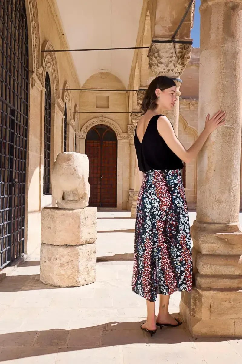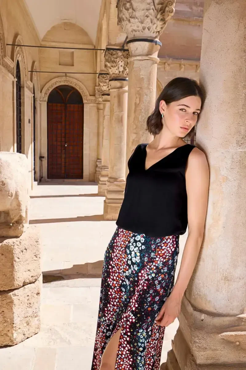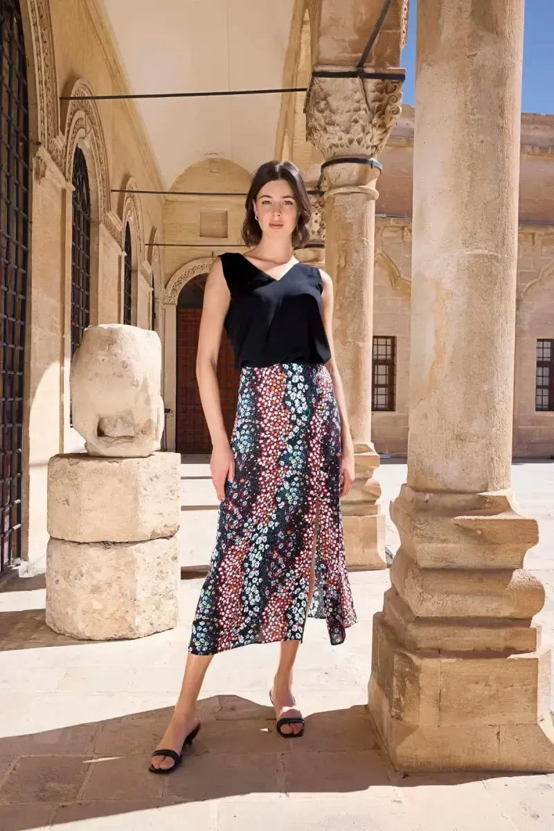 Monamise Ayollar uchun gulli naqshli yirtiq yubka to'plami