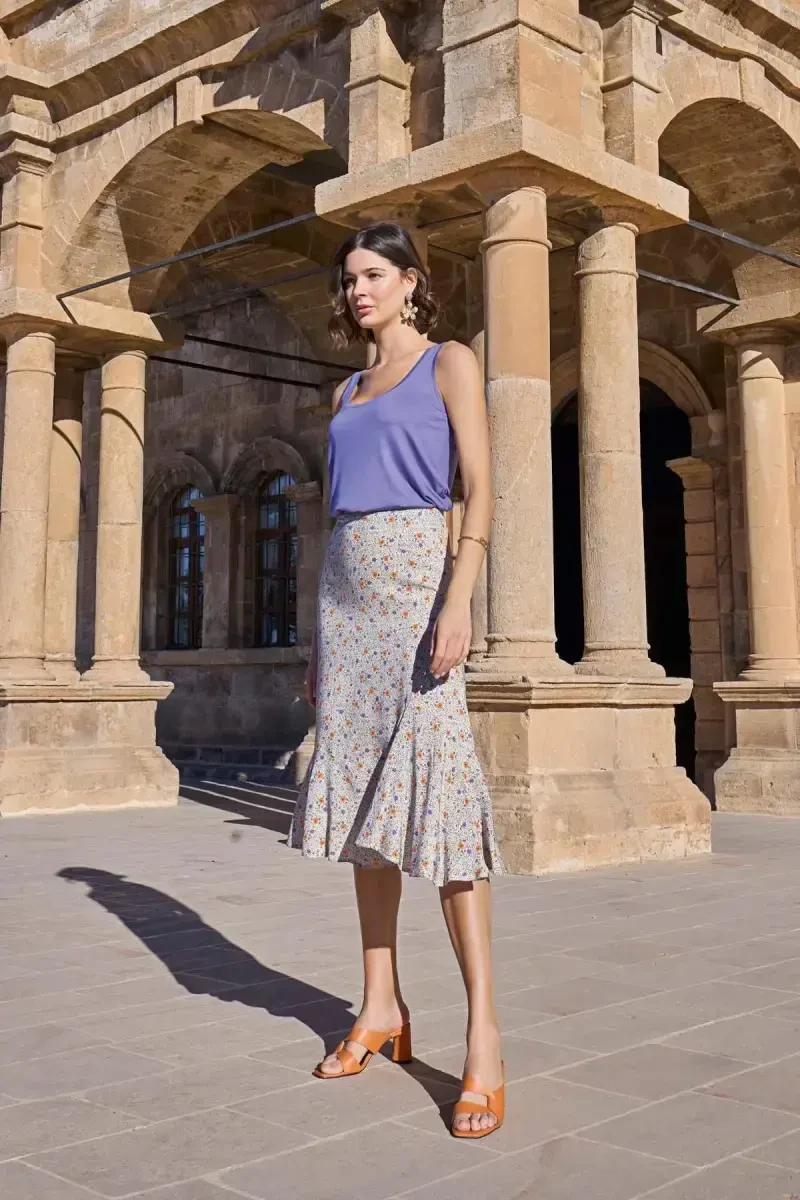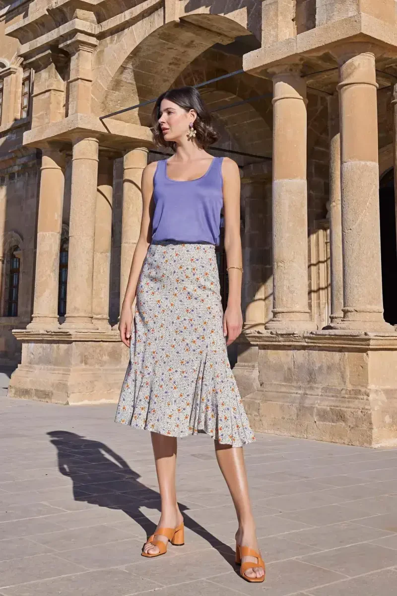 Monamise Ayollar uchun Gullar Naqshli Qalin Kamarli Yubka To'plam 23071 - Zamonaviy va Qulay Yozgi Kiyim