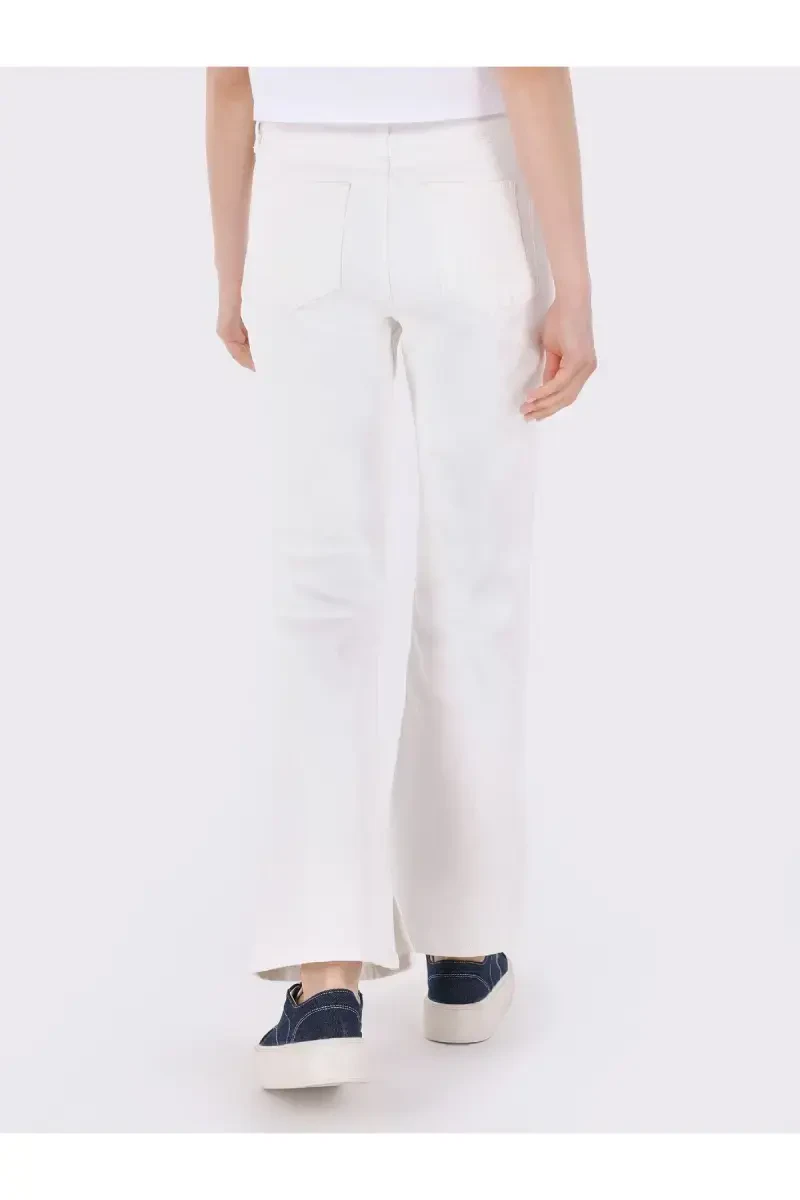 791 Monica Regular Fit Oddiy Belli Keng Oyoqli Oq Ayollar Jinsi Shimlari