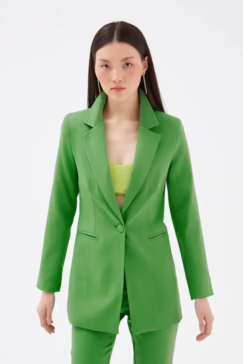 Mono Collar Classic Jacket - Light Green, a candidate to be an indispensable part of your wardrobe! This jacket, offered with Sateen quality, offers a comfortable experience all day long with its light and thin structure, ideal for daily use. It allows you to achieve both a stylish and modern look with its light green color and classic mono collar design. This jacket will accompany you in every environment, from business life to special occasions, thanks to its versatile combinability. The double-pocket design allows you to carry your belongings safely, while the Aform fit pattern sits elegantly on your body lines, creating a stylish silhouette. Although there are no details that stand out with the leopard pattern, the overall design of the jacket allows you to create a remarkable style. Its long-sleeved structure offers you ideal protection and comfort during seasonal transitions, while its satin texture gives a delicate shine and a smooth feel. Thanks to its straight cut, you can capture a timeless style and easily combine it with skirts, trousers or dresses. Its standard length provides comfortable use by adapting to different body types. Thanks to its 100% polyester material, it is easy to clean and durable. The woven fabric type helps the jacket maintain its shape for a long time, while offering a comfortable wearing experience. Experience style and comfort together with the Mono Collar Classic Jacket - Light Green.