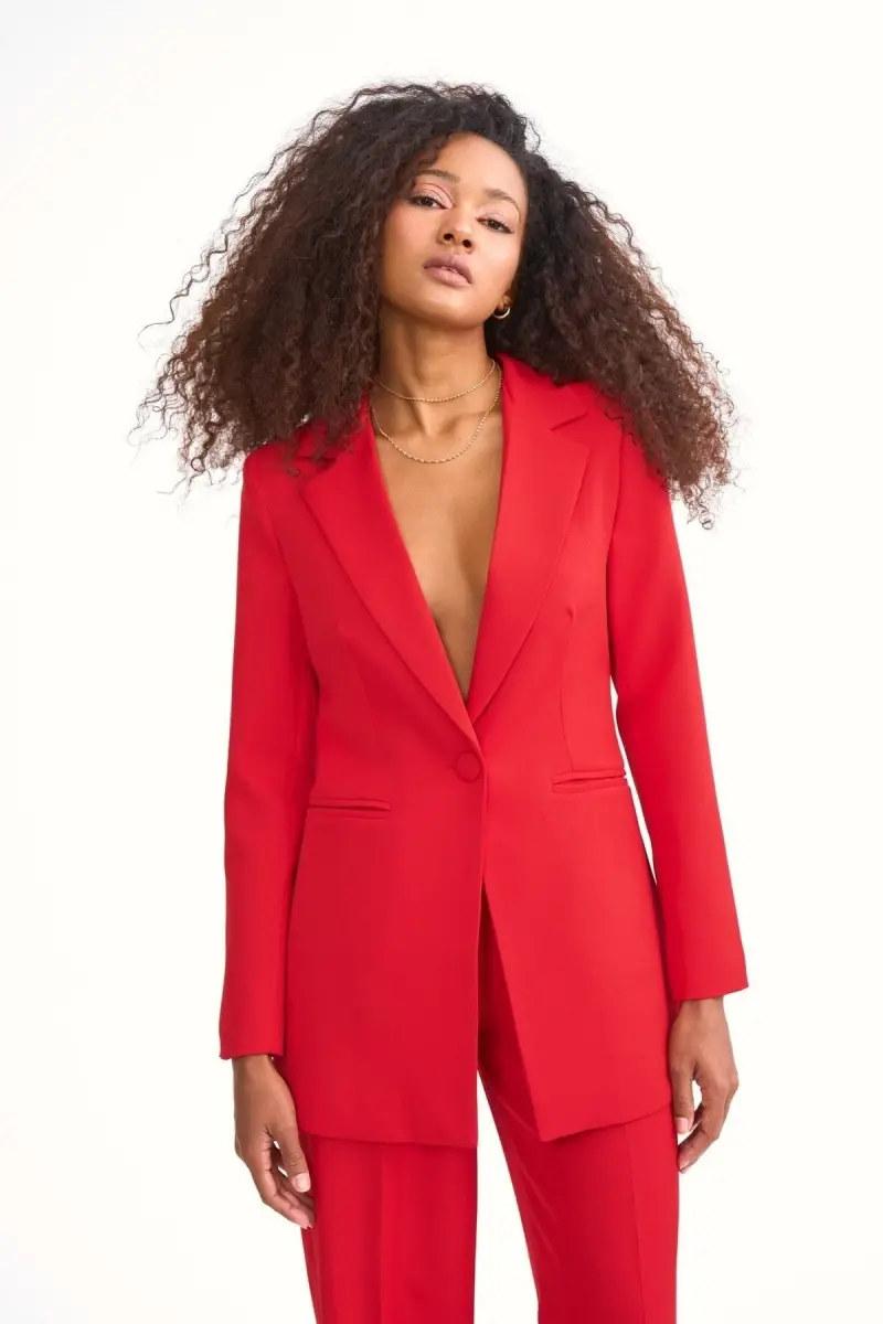 Mono Yaka Klasik Ceket - Kırmızı-KIRMIZI