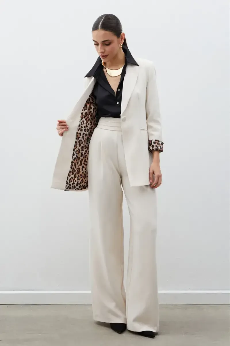Chiroyli va o'ziga xos dizayni bilan ajralib turadigan Mono Yoqali Klassik Pidjak, garderobingizning ajralmas qismiga aylanishga nomzod! Klassik bichimni zamonaviy detallar bilan birlashtirgan ushbu pidjak, har qanday muhitda e'tiborni o'zingizga qaratish imkonini beradi. Tosh rangi har qanday kombinatsiya bilan moslashadi, leopard naqshli astar esa pidjakka o'zgacha va jasur tus beradi. Kundalik foydalanish uchun ham, maxsus kunlar uchun ham ideal bo'lgan ushbu pidjak, uslubingizni aks ettirishning eng chiroyli usuli bo'ladi.**Mahsulot Tavsifi**Mono Yoqali Klassik Pidjak zamonaviy va klassik chiziqlarni birlashtirgan o'ziga xos dizaynga ega. Tosh rangi bu pidjakni ko'p qirrali qilib, turli xil kiyimlar bilan osonlikcha kombinatsiya qilish imkonini beradi. Xoh jinsilar bilan qulay ko'rinishga ega bo'ling, xoh klassik libos bilan nafis ko'rinishga ega bo'ling, bu pidjak har doim uslubingizni to'ldiradi. Pidjakning eng diqqatga sazovor xususiyatlaridan biri bu leopard naqshli astaridir. Ushbu detal pidjakka ham qiziqarli, ham jasur teginishni qo'shadi, shu bilan birga kiygan odamga o'ziga ishonchli pozitsiyani beradi. Mono yoqali dizayn pidjakka zamonaviy va minimalist tuyg'u beradi. Ushbu yoqa detali pidjakning umumiy ko'rinishini nafis tarzda to'ldiradi va turli xil aksessuarlar bilan osongina moslashtirilishi mumkin. Pidjak sifatli matosi tufayli uzoq umr ko'rishni ta'minlaydi. Tikuv detallariga e'tibor pidjakning sizga mukammal tarzda mos kelishini ta'minlaydi. Ichki va tashqi makonlarda osongina foydalanish mumkin bo'lgan ushbu pidjak, mavsumiy o'tishlar uchun ideal tanlovdir. Xoh ofisda, xoh kechki ovqatda, xoh kundalik sayrda kiying, Mono Yoqali Klassik Pidjak har doim sizning uslubingizni ta'kidlaydi. Ushbu pidjak nafaqat kiyim, balki ifoda shaklidir. Uslubini aks ettirishni va farq yaratishni istaganlar uchun ajoyib tanlovdir. Leopard naqshli astarning kutilmagan ta'siri pidjakni zerikishdan uzoqlashtiradi, tosh rangi esa klassik va abadiy ko'rinishni taqdim etadi. Ushbu pidjak bilan siz garderobingizga ham zamonaviy, ham klassik teginish qo'shishingiz mumkin. Xulosa qilib aytganda, Mono Yoqali Klassik Pidjak uslubga ega ayollarning garderobida bo'lishi kerak bo'lgan narsadir. Ham chiroyli, ham qulay bo'lgan ushbu pidjak har qanday muhitda o'zingizni yaxshi his qilishingizga imkon beradi. O'ziga xos dizayni, sifatli materiali va ko'p qirrali foydalanish xususiyatlari bilan ushbu pidjak uzoq yillar davomida sevimli buyumingiz bo'lishga nomzoddir.**Mahsulot Xususiyatlari*** Mono yoqali dizayn* Tosh rangi* Leopard naqshli astar* Klassik bichim* Ko'p qirrali foydalanish* Sifatli mato* Uzoq umr ko'rish* Zamonaviy detallar* Chiroyli va qulay* Mavsumiy foydalanish**Qo'shimcha Ma'lumotlar**Pidjakni tozalash uchun quruq tozalash tavsiya etiladi. Turli xil o'lcham variantlari mavjud. Mahsulotning haqiqiy rangi ekran sozlamalari tufayli biroz farq qilishi mumkin.