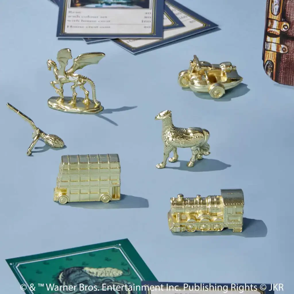 WIZARDING WORLD va unga tegishli barcha savdo belgilari, belgilar, nomlar va belgilar © & ™ Warner Bros. Entertainment Inc.ga tegishli. Nashr huquqlari © JKR. Hasbro va Monopoliya nomlari va logotiplari, o'yin taxtasining o'ziga xos dizayni, to'rtta burchak kvadrati, janob Monopoliya nomi va xarakteri hamda taxta va o'yin qismlarining har birining o'ziga xos elementlari Hasbro, Inc.ning mulkiy savdo o'yini va o'yin uskunalari uchun savdo belgilari hisoblanadi.