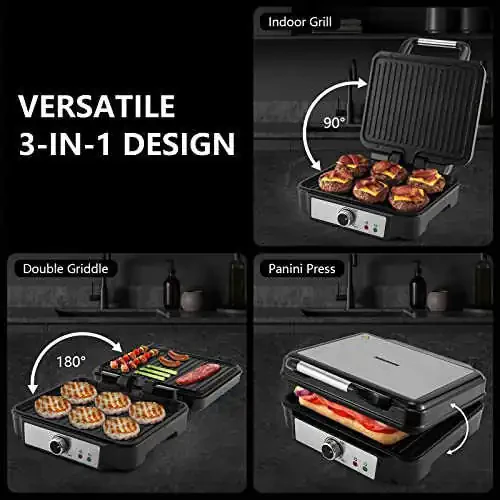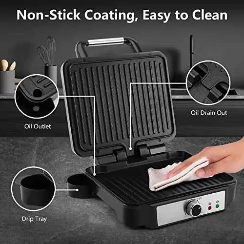 180 daraja ochiladigan dizayni tufayli sendvichingizni osongina joylashtirib olishingiz mumkin. Olib tashlanuvchi tomchi tepsisi tozalashni juda osonlashtiradi.