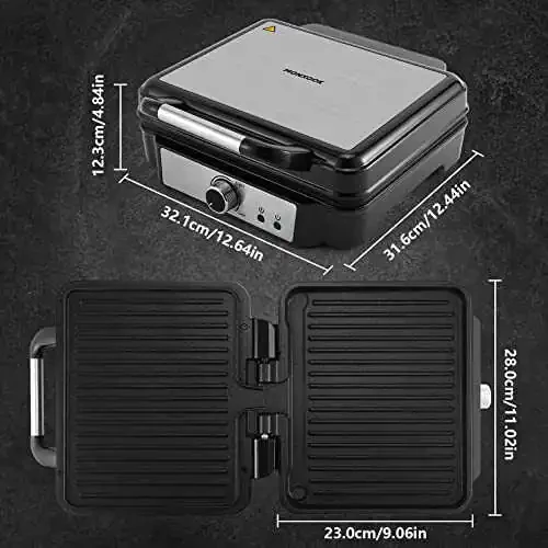 O'zining zanglamaydigan po'latdan yasalgan korpusi va ixcham dizayni bilan MONXOOK Panini Press Sandwich Maker sizning oshxonangizga ham zamonaviy, ham amaliy qo'shimcha bo'ladi.