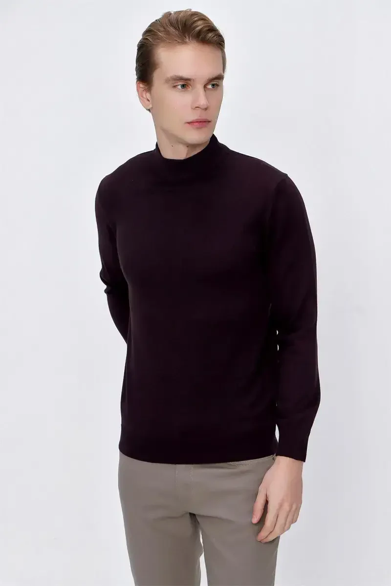 Mor kazak, triko kazak, yarım balıkçı, rahat kesim, dinamik fit, erkek kazak, basic kazak, mor triko, kışlık kazak, stil sahibi