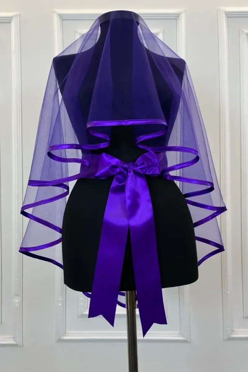 wedding veil, belt, gloves, purple bias tape, henna night, wedding, marriage, bridal set, bridal accessory, special invitation