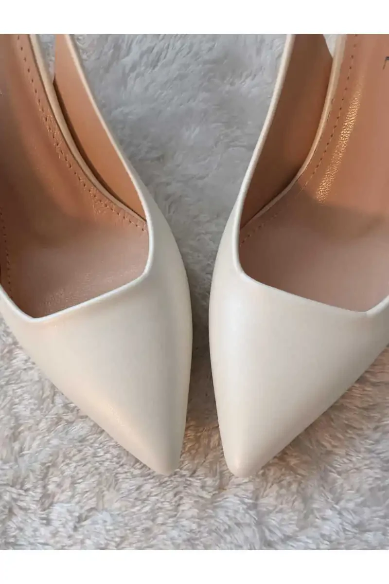 İnce ve zarif sivri burun tasarımı, ayaklarınızın güzelliğini ön plana çıkarırken, kadeh topuk ise sizi daha uzun ve ince göstererek duruşunuzu mükemmelleştirecek. 8,5cm yüksekliğindeki topuk, yürürken özgüveninizi artıracak ve sizi daha çekici gösterecek.