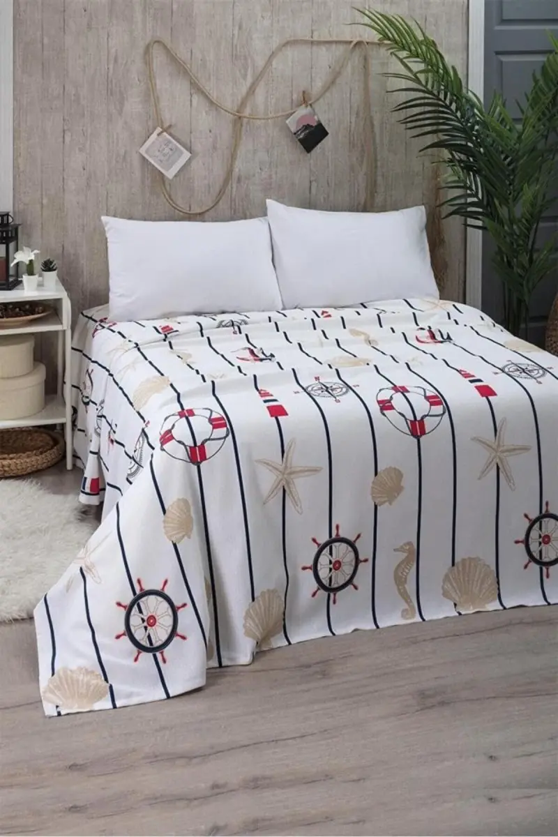 Морское Одеяло для Одиночной Кровати разработано, чтобы вывести стиль и комфорт вашей спальни на новый уровень. Предлагая стильный и современный вид с элегантными морскими узорами, одеяло также обеспечивает расслабляющий опыт сна благодаря своей мягкой текстуре.
