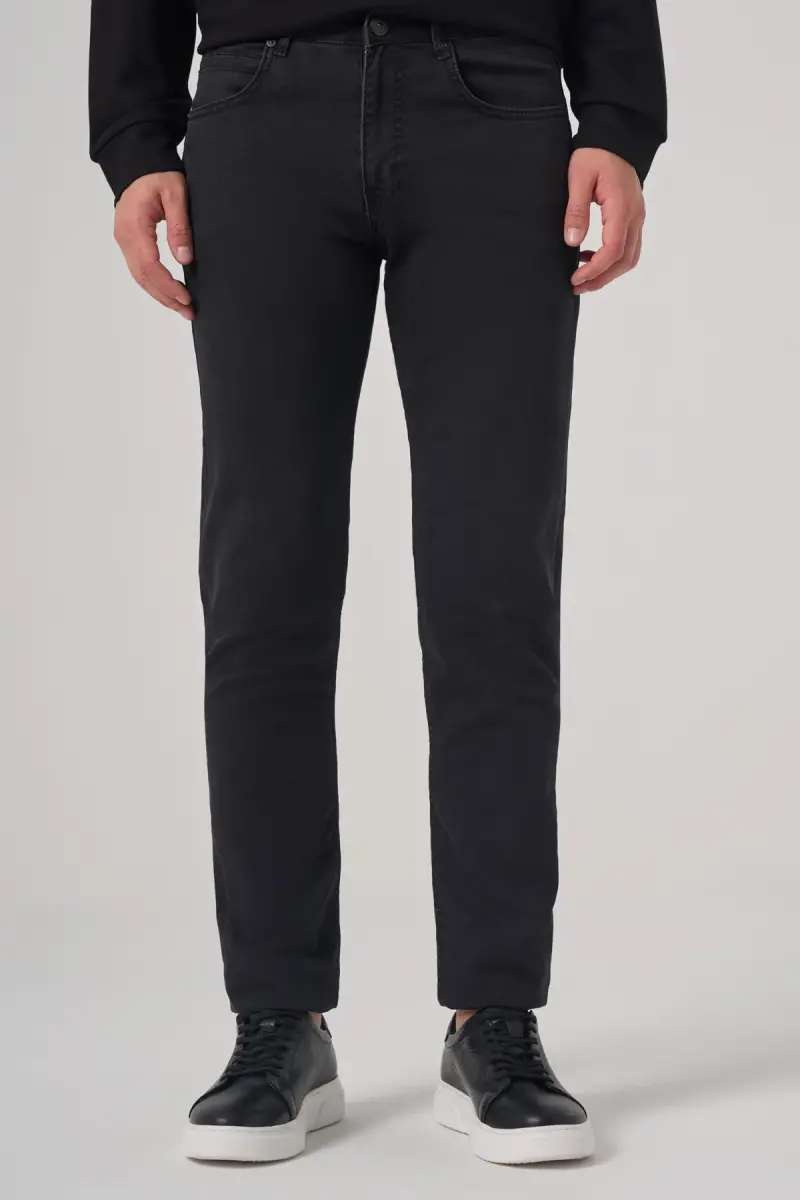 Morven Erkek Siyah Denim 5 Cep Slim Fit Jean Kot Pantolon