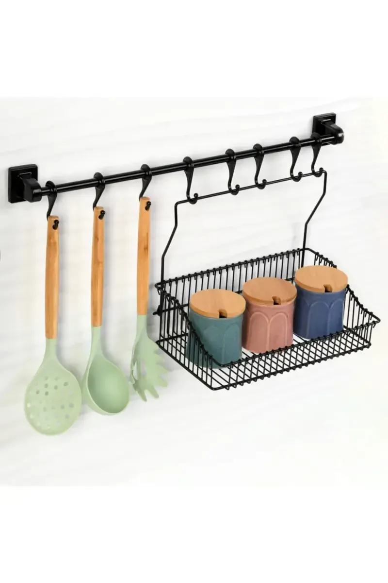 Прочная клейкая вешалка с 8 крючками (55 см) и кованая корзина 20x30 - h32+sr30 — идеальное решение для тех, кто любит порядок в каждом уголке своего дома. Этот набор изготовлен из высококачественных материалов и отличается длительным сроком службы. Вешалка легко крепится к стене благодаря прочному клейкому слою, не повреждая ее. На нее можно повесить различные предметы, такие как полотенца, халаты, кухонные принадлежности или одежду. Вешалка длиной 55 см имеет 8 крючков, что обеспечивает широкую область применения. Кованая корзина привлекает внимание своим элегантным и изящным дизайном. Корзина размером 20x30 см поможет вам аккуратно хранить косметику, специи, ключи или другие мелкие предметы. Как вешалка, так и корзина дополняют друг друга своим эстетичным внешним видом и придают вашему дому приятный штрих. Этот набор сочетает в себе практичность и стиль, делая ваше жилое пространство более функциональным и эстетичным.